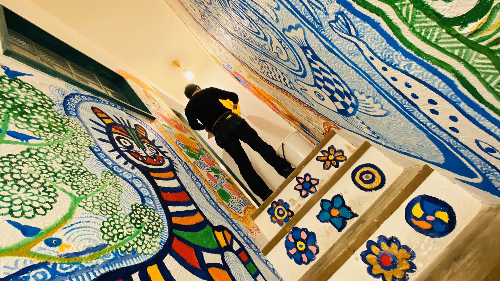 名古屋、赤池の美容室ZAC2Fにオープンしたコミュニティスペース「SOWAKA」の入り口と階段に壁画を描いてきました!
