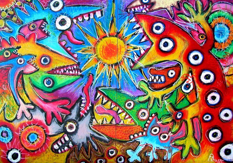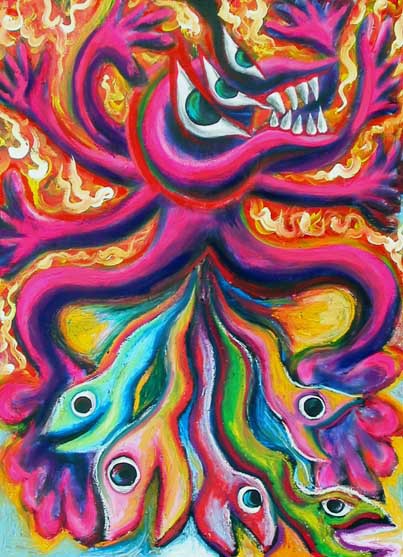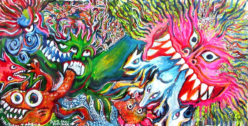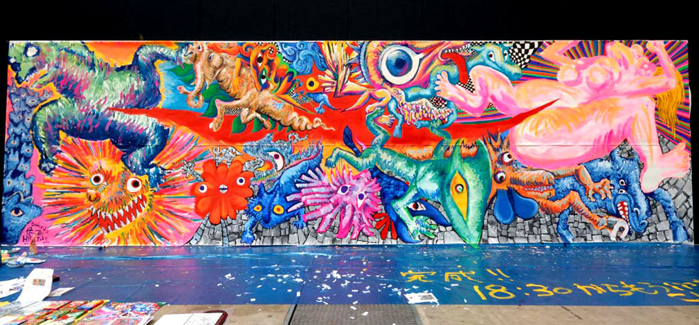 壁画の制作や異分野とのコラボレーション、パフォーマンスなど、いろいろなことに頭をつっこむ。飯田晃一(舞踏)、鹿島信治(音楽)、小林拓馬(音楽)、平魚泳(音楽)達と各地でゲリラパフォーマンスを行い、富士山頂ライブペインティングをやったのもこの時期。