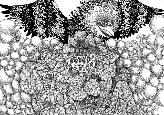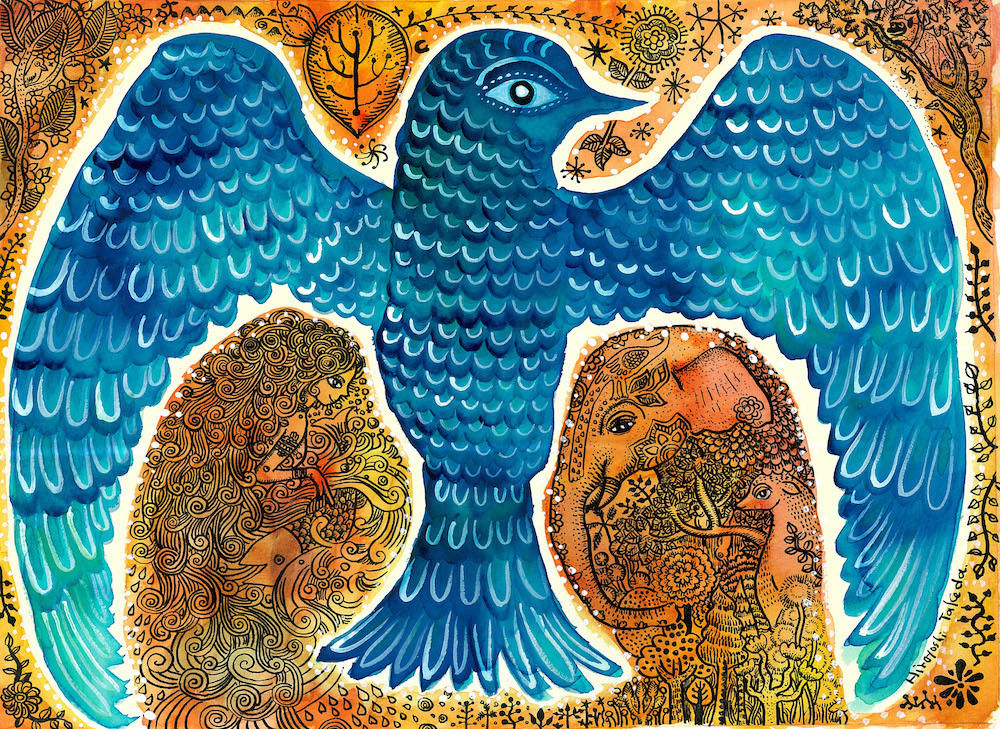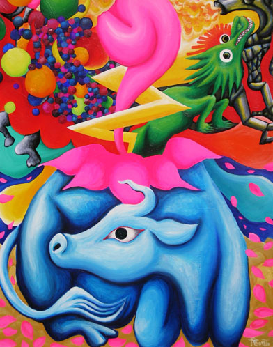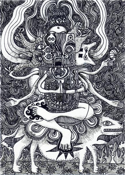 インド、ロック、ロボット、動物怪獣…好きなものをそのまま描いたイラストレーションがほとんど。次第にアクリルも使うようになる。