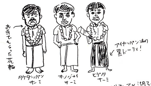 花輪、ドーティー、裸足、ヒゲの日本人3人!