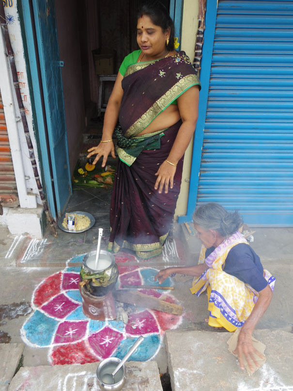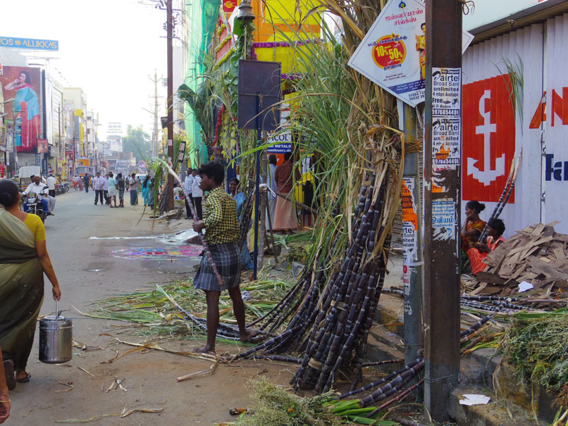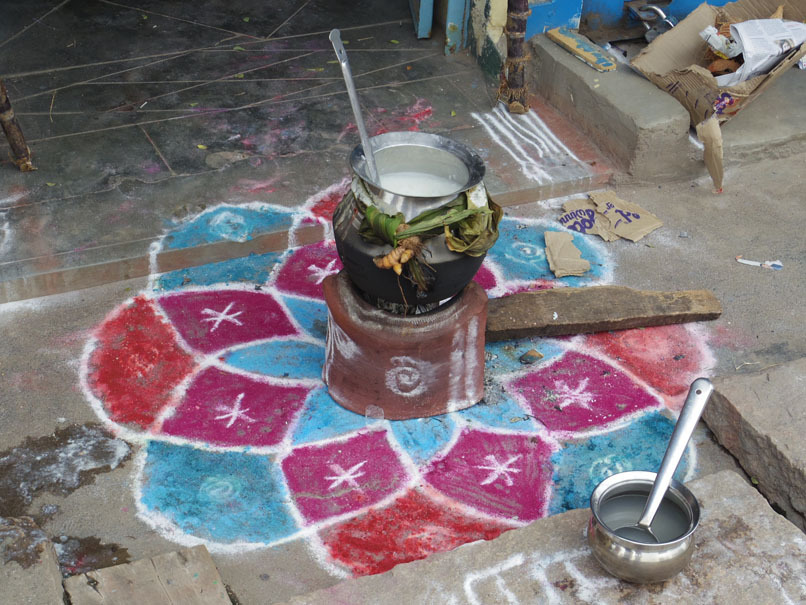 街で会う人会う人に「ポンガル ワールットゥッカル!(ポンガルおめでとう!)」「ハッピーポンガル!」と声を掛け合って歩いた。