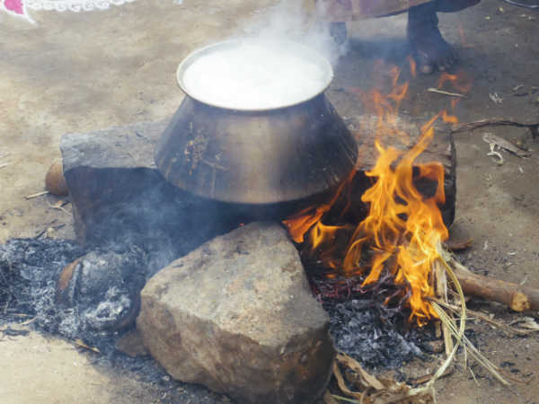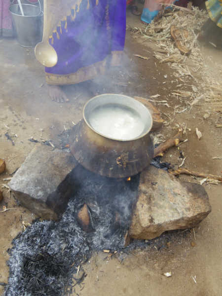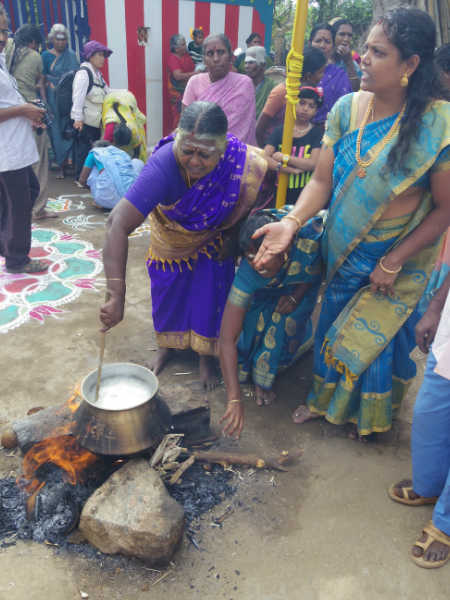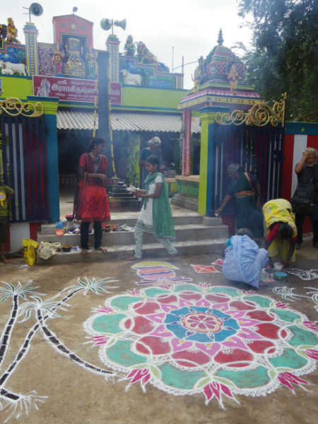 大きなコーラムが描かれていて、ポンガルも作っている。