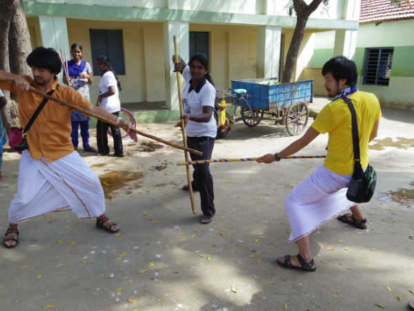 迫力の電撃ネットワーク的な芸の後は、タミル武術シランバムの演舞。