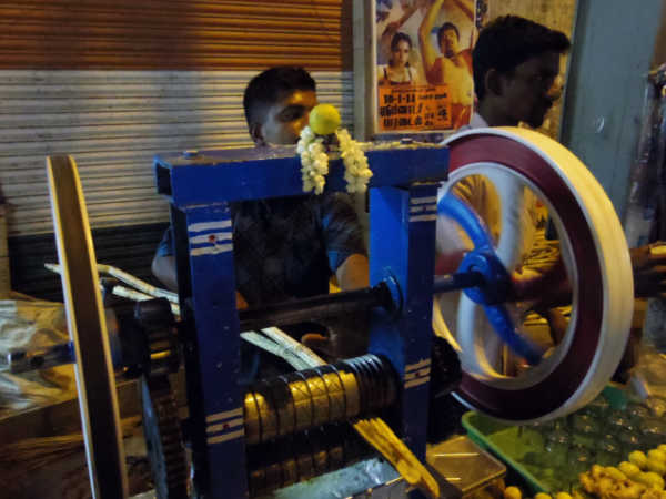 お寺に行く途中、いつものサトウキビジュース屋さん。何年も前から同じ場所で仕事してるなあー。