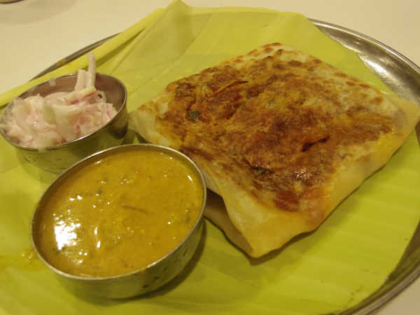 夜は、いつも混んでいるお店でマサラパロッタ。