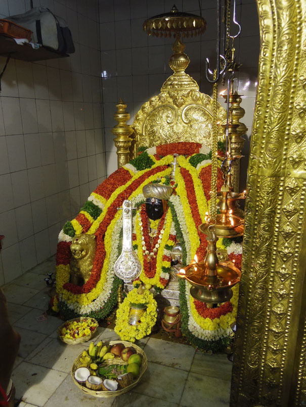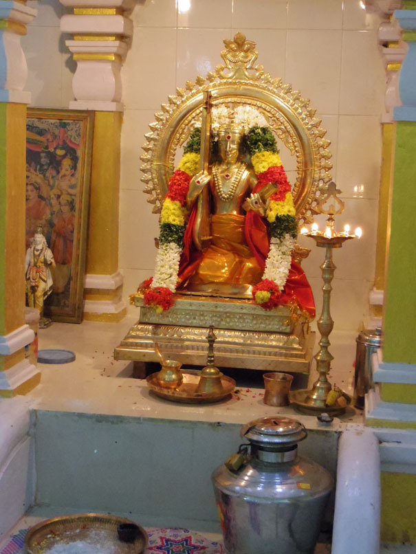 サンダルを脱いで入り口のお堂に入ると、ティヤーガラージャが祭ってありブラーミン達が礼拝をしたりヴェーダの学習をしている。