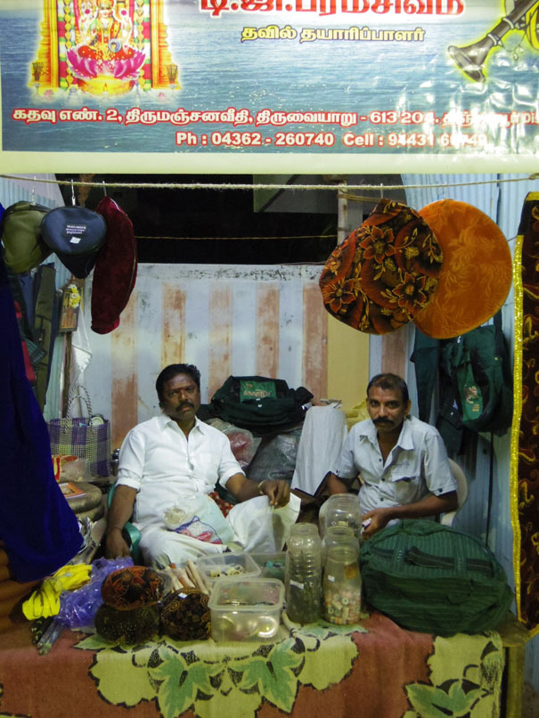 大きいステージの斜め向かいに小さなステージがあり、そこでマンガライサイ(めでたい音楽)のナーダスワラム&タヴィルを演奏している。