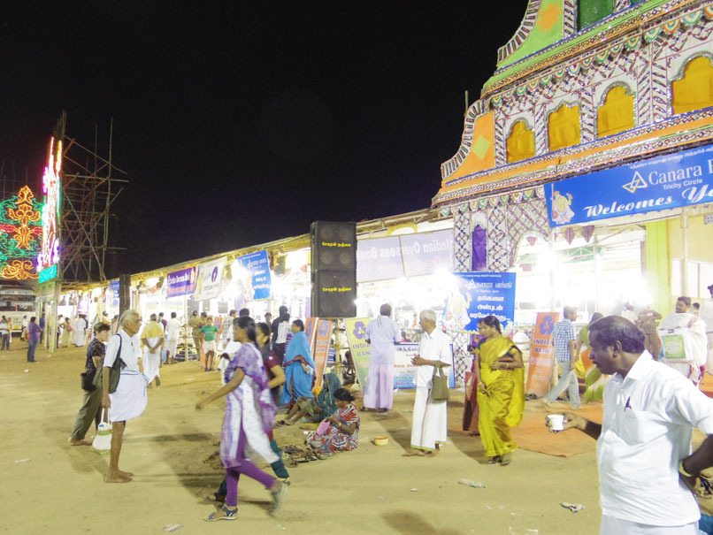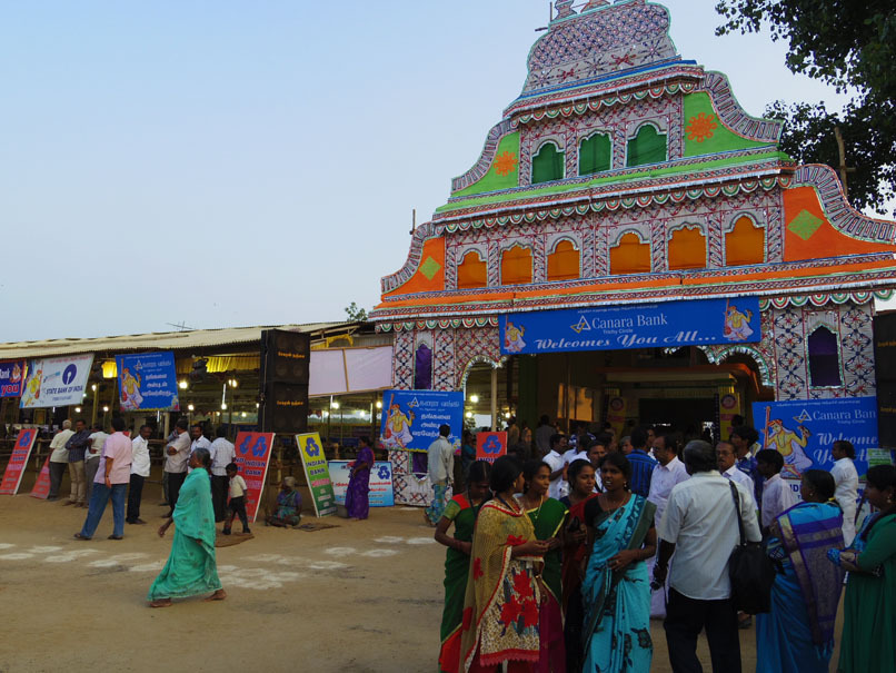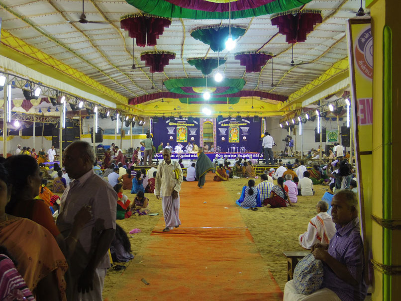 ティルヴァイヤールについて、こっちかなー?という方に行くと、スピーカーからナーダスワラム&タヴィルの音が流れていて、お祭りの雰囲気。