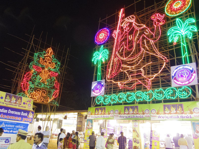 日が暮れてティヤーガラージャのネオンもスイッチオン!