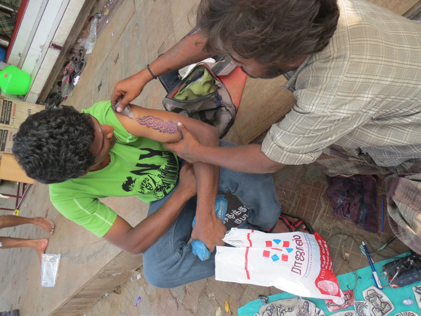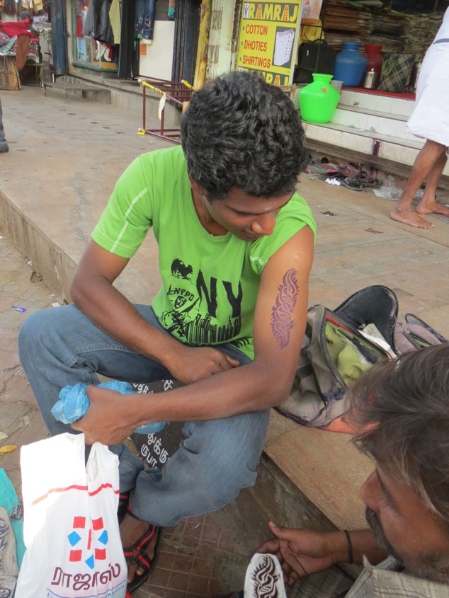 ミーナークシー寺院の近くで営業中のタトゥー屋さん