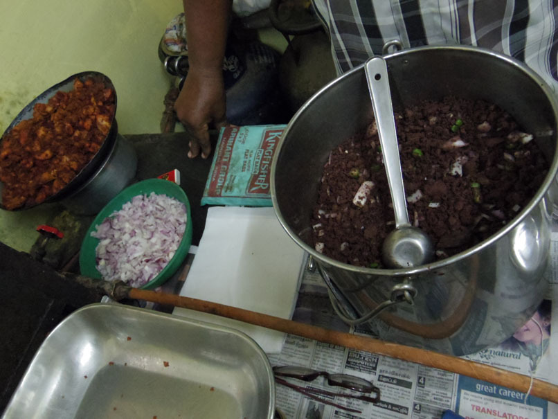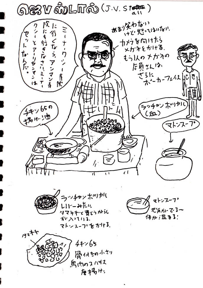 血のポリヤル、マトンスープ、チキン65を食べた。