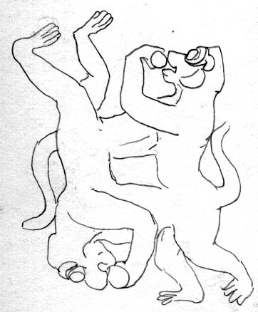 よくみると、四匹の猿が! こんな感じのシャレの効いた彫刻を 見つけると嬉しくなる。 インド人もこうゆうの好きみたいで しきりに『これを描きなよ!』と薦 めてくれて発見!